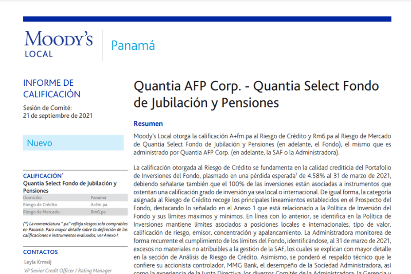 Informe de calificación sesión de comité: 21 de septiembre de 2021