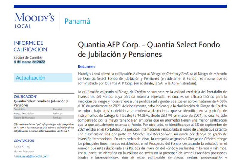 Informe de calificación sesión de comité: 4 de marzo de 2022